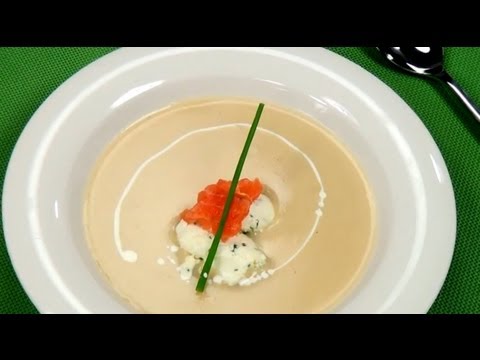 Video recept - Polévka z topinamburu s creme fraiche a uzeným lososem.